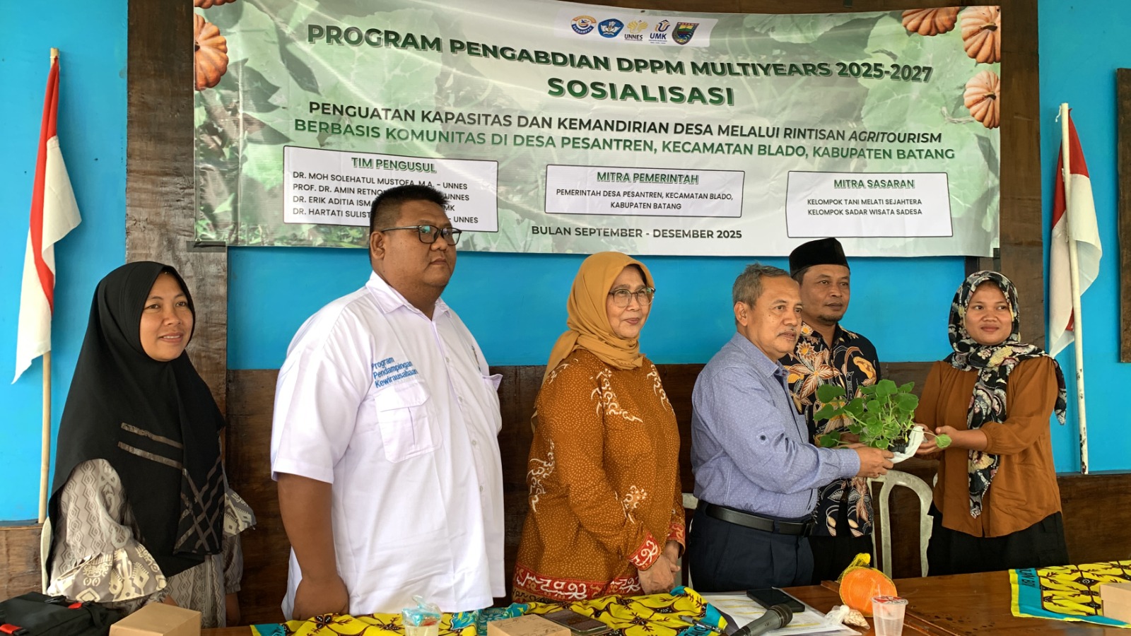 Universitas Negeri Semarang (UNNES) bekerja sama dengan Direktorat Penelitian dan Pengabdian kepada Masyarakat (DPPM) Kementerian Pendidikan Tinggi, Sains, dan Teknologi (Kemendikti Saintek) tengah melaksanakan program pengabdian masyarakat di Desa Pesantren, Kecamatan Blado, Kabupaten Batang, Jawa Tengah. Program ini memperoleh dukungan pendanaan melalui skema Pemberdayaan Wilayah (PW) dan diarahkan untuk memperkuat kapasitas desa agar mampu berkembang secara mandiri melalui model Agritourism berbasis komunitas.